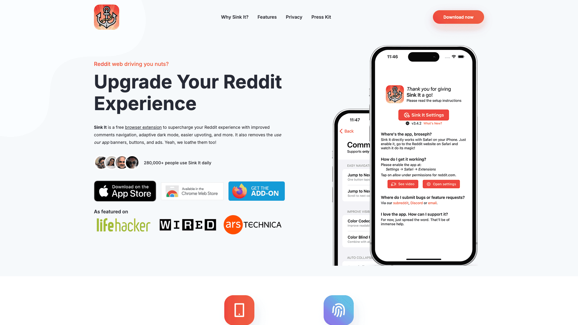 Sink It for Reddit is a browser extension designed to enhance the Reddit web experience across Safari, Chrome, Firefox, and Edge. Developed in 2024, the project emerged during the Reddit API changes and now boasts around 300,000 users, primarily on Apple platforms. The extension offers comprehensive Reddit design support, similar to Reddit Enhancement Suite (RES), with 99% of features available for free.